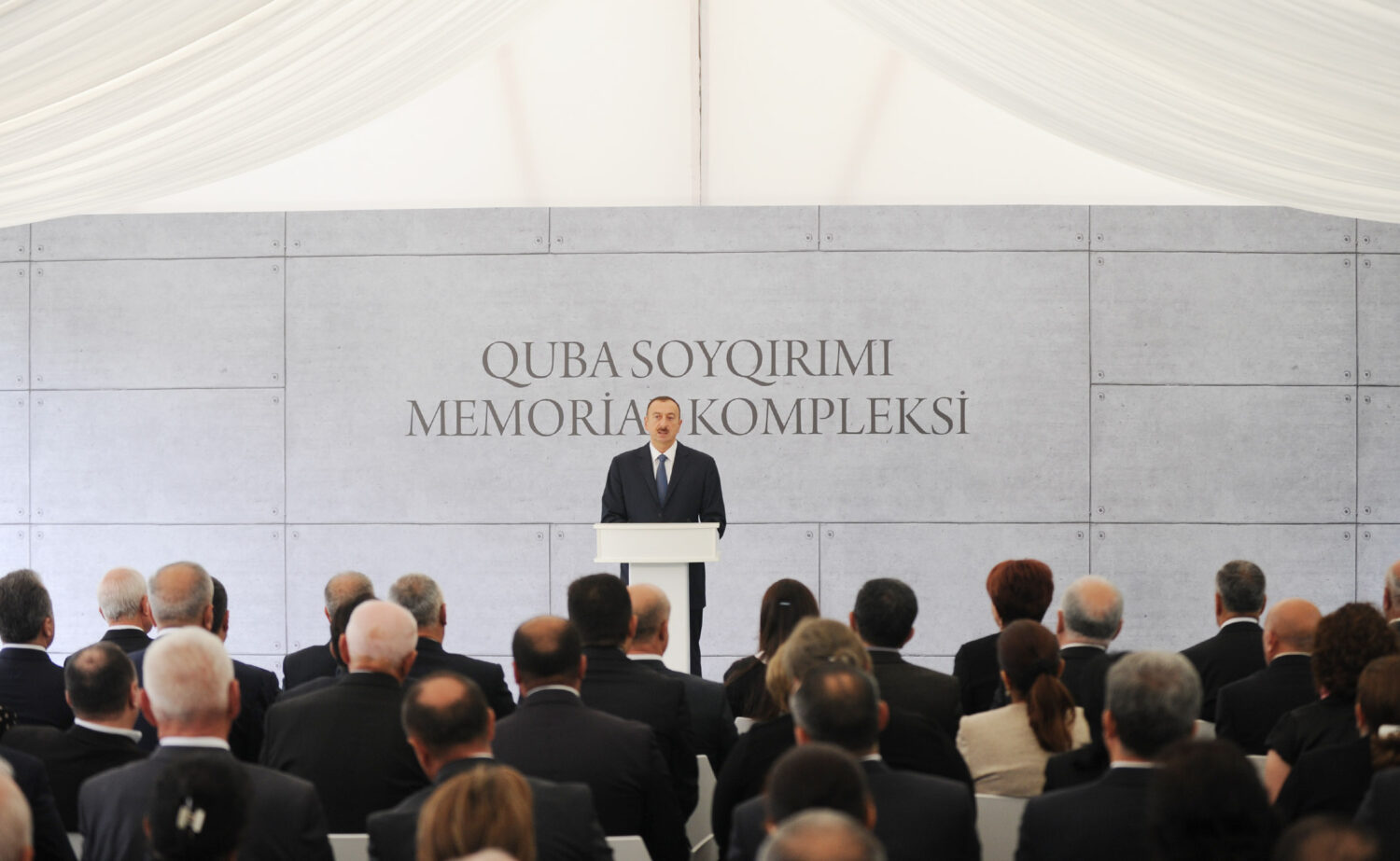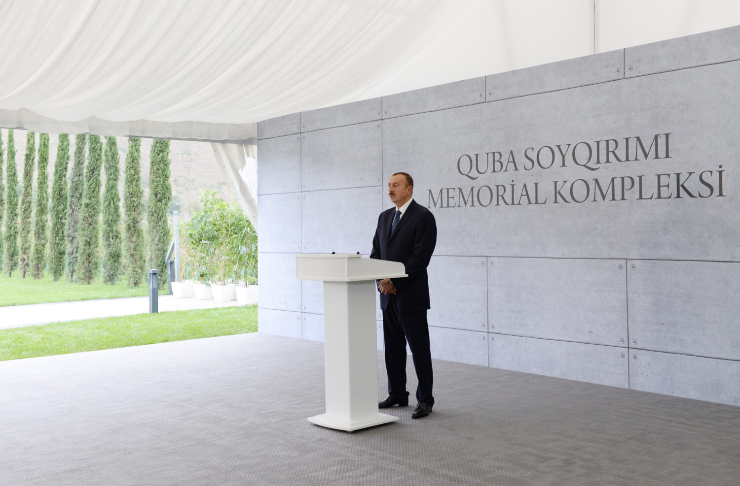 – Bu gün biz Quba şəhərində “Soyqırımı Memorial Kompleksi”nin açılışına toplaşmışıq. 1918-ci ilin mart-iyul aylarında erməni quldur dəstələri Azərbaycanın demək olar ki, bütün ərazilərində dinc əhaliyə qarşı soyqırımı törətmişlər. Beş ay ərzində 50 mindən çox soydaşımız erməni faşizminin qurbanı olmuşdur. Bakıda, Quba qəzasında, Şamaxıda, Qusarda, İrəvanda, Naxçıvanda, Zəngəzurda, Qarabağda, Lənkəranda, demək olar ki, bütün Azərbaycan torpaqlarında bizə qarşı soyqırımı törədilmişdir. Bu memorial kompleksin yaradılması hesab edirəm ki, tarixi hadisədir. Bildiyiniz kimi, 2007-ci ildə burada qazıntı işləri aparılarkən kütləvi məzarlıq aşkarlanmışdır. Ondan sonra buraya alimlər, ekspertlər ezam edilmişdir və böyük tədqiqat işləri aparılmışdır. Tədqiqat işlərinin aparılması nəticəsində aşkar edilmişdir ki, burada minlərlə soydaşımız erməni quldur dəstələri tərəfindən amansızlıqla, qəddarlıqla öldürülmüşdür. 2009-cu ilin sonunda mənim tərəfimdən Quba Soyqırımı Memorial Kompleksinin yaradılmasına dair Sərəncam imzalanmışdır və 2011-ci ildən işlər başlanmışdır. Bu gün biz memorial kompleksin açılışını edirik.