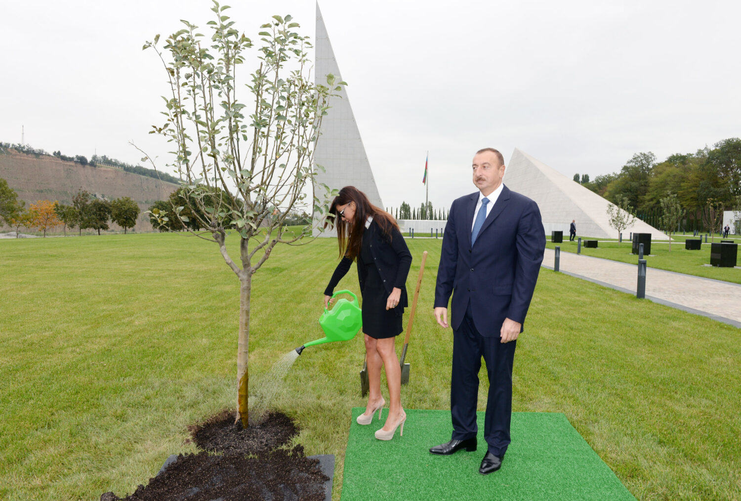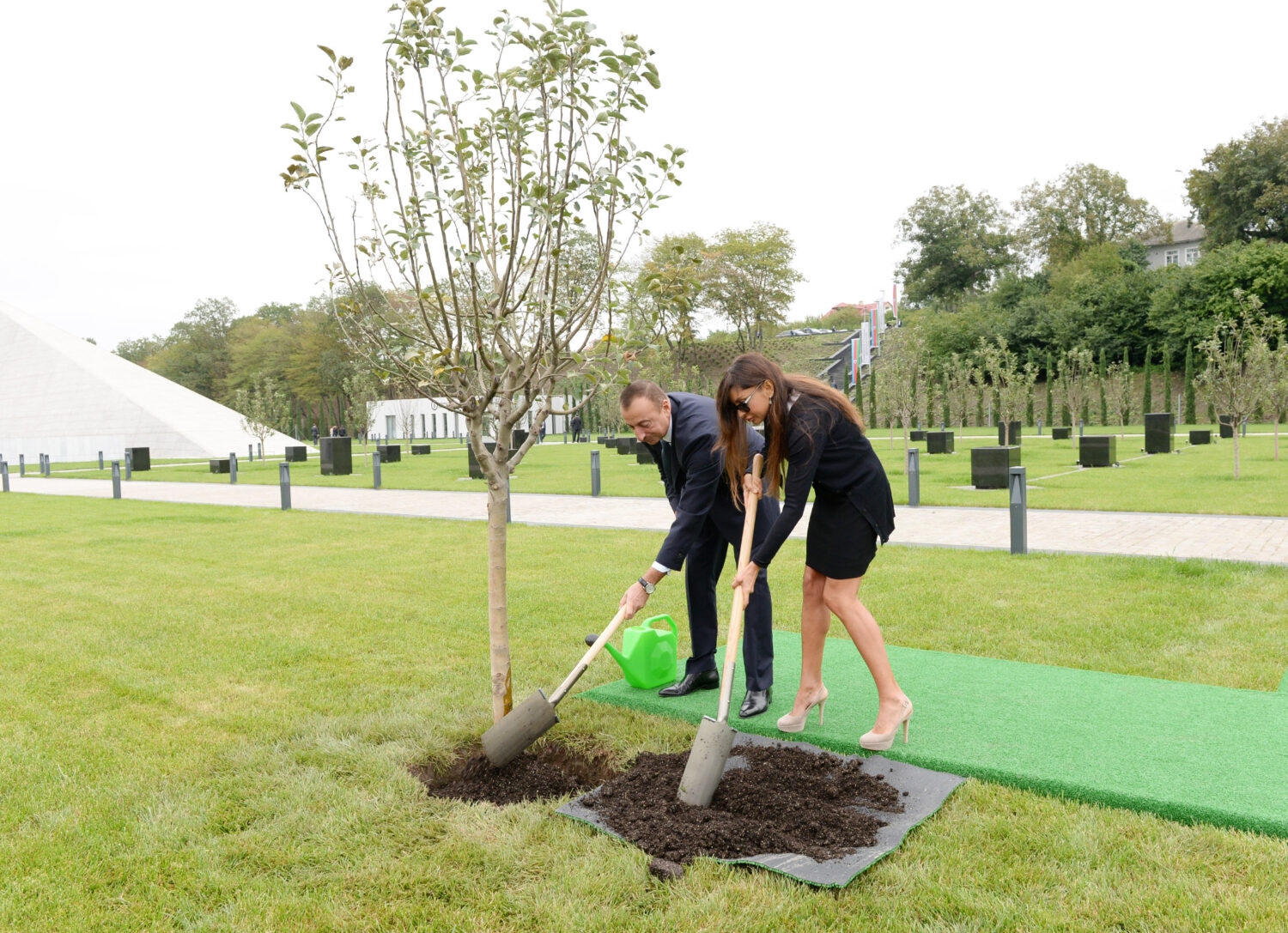 Sonda Prezident İlham Əliyev və xanımı Mehriban Əliyeva faciə qurbanlarının xatirəsinə ağac əkdilər.
