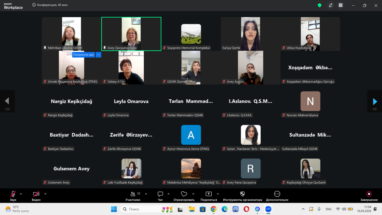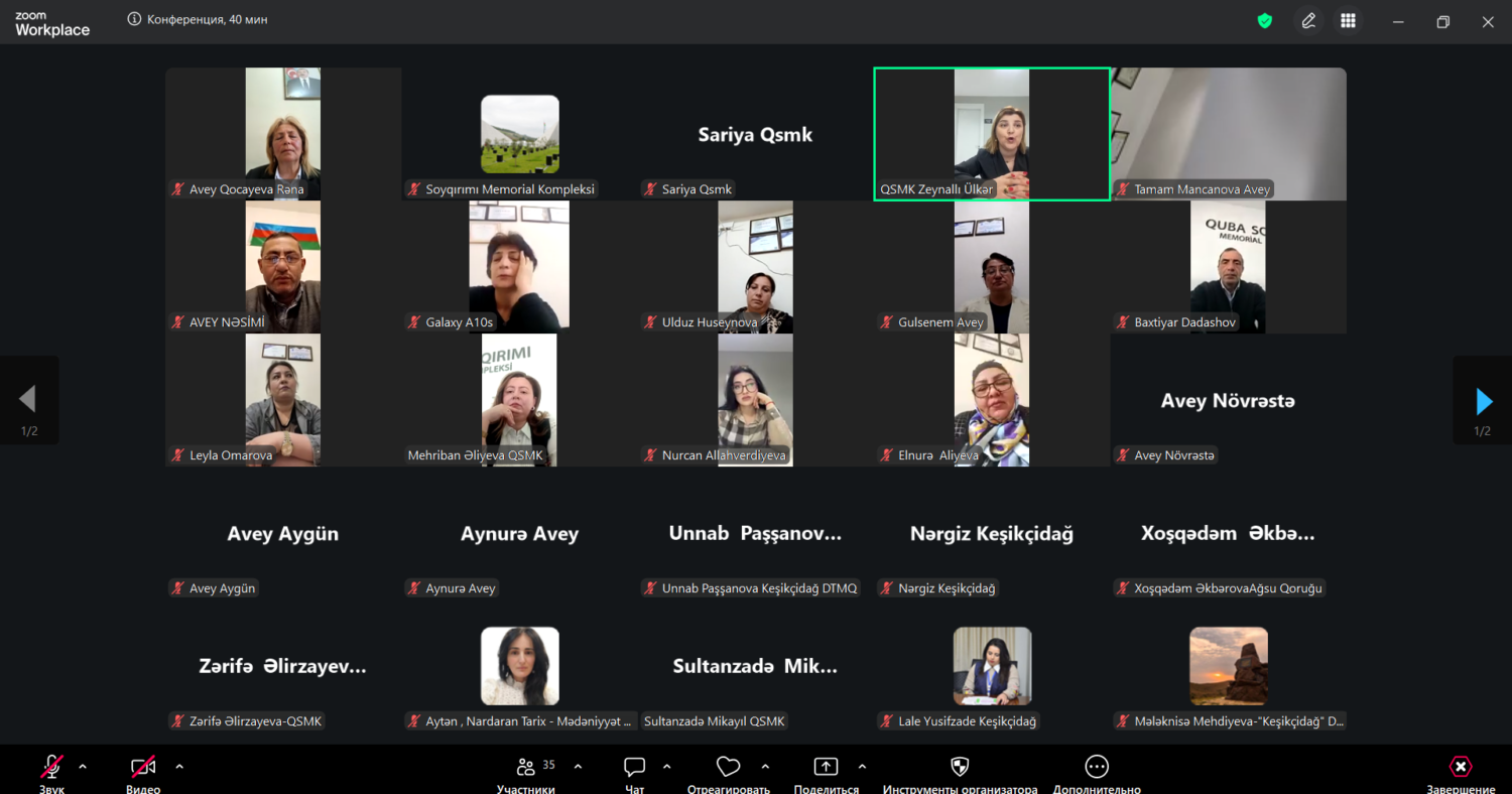 2026-ci il “Şəhərsalma və Memarlıq İli” çərçivəsində Azərbaycan Respublikası Mədəniyyət Nazirliyi yanında Mədəni İrsin Qorunması, İnkişafı və Bərpası üzrə Dövlət Xidmətinin nəzdində fəaliyyət göstərən Quba şəhərində “Soyqırımı Memorial Kompleksi”nin və “Avey” Dövlət Tarix-Mədəniyyət Qoruğunun birgə təşkilatçılığı ilə “Avey qoruğunun abidələri: maddi-mədəni irsin sistemləşdirilməsi və mühafizəsi məsələləri” adlı vebinar keçirilib. / 16 April, 2026