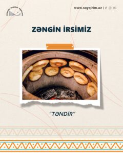 Təndir-Azərbaycanın müxtəlif bölgələrində əsrlər boyu istifadə olunmuş ənənəvi bişirmə ocağıdır. Yerə qazılmış silindrik formalı bu soba gil, saman və çay daşından hazırlanır. İçərisində odun yandırılaraq yüksək temperatur yaradılır. Təndirin iç divarına yapışdırılaraq bişirilən çörək – təndir çörəyi təkcə gündəlik qida deyil, həm də xalqın ruzi və bərəkət rəmzidir. Təndir bəzən ət və quş ətlərinin bişirilməsində də istifadə olunan ənənəvi saxsı sobadır. Müasir dövrdə ustalar əsasən iki növdə təndir hazırlayırlar: yerüstü və yeraltı. Təndirdə bişirilən çörək uzunömürlülüyün simvolu sayılır və Azərbaycan xalqının gündəlik qidasının ayrılmaz hissəsidir. Belə çörək uzun müddət xarab olmadan qalır və bir neçə gün ərzində istifadə oluna bilər.