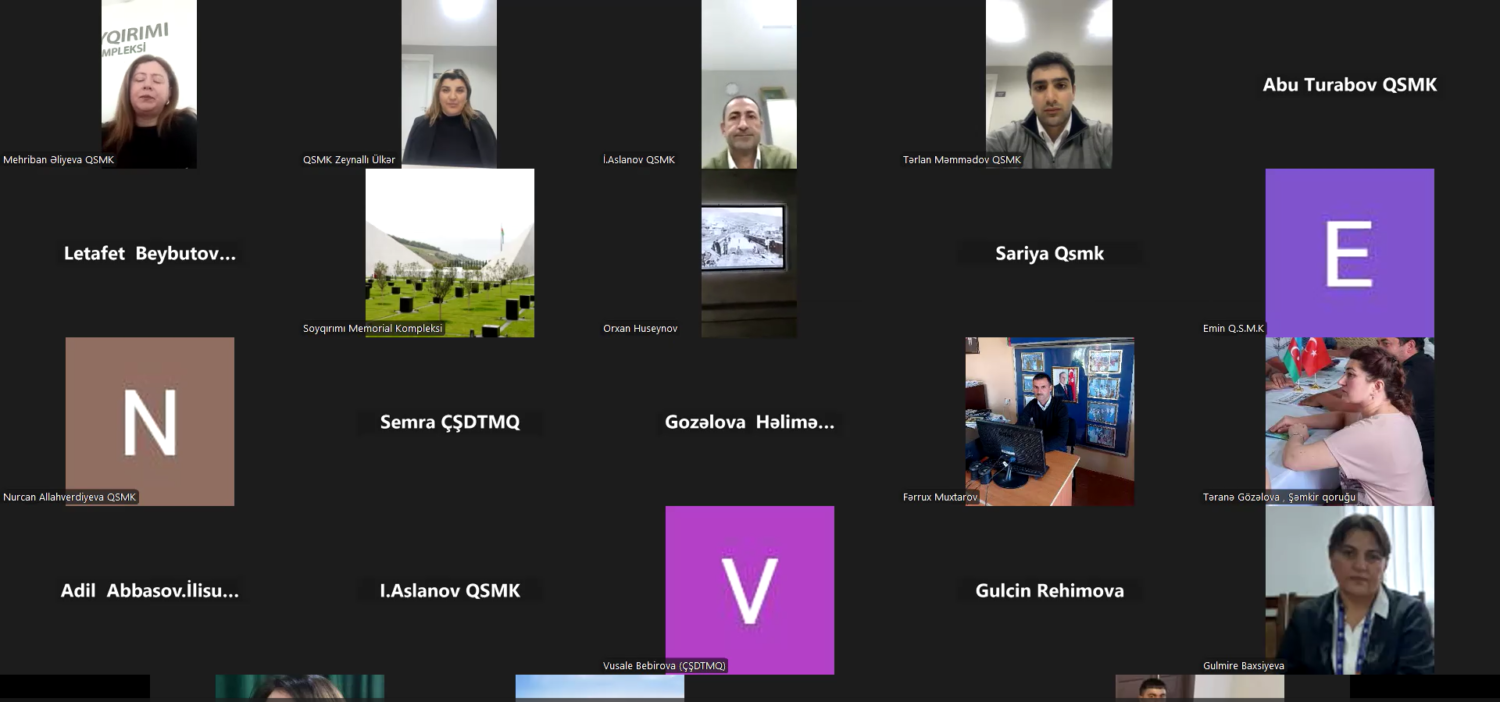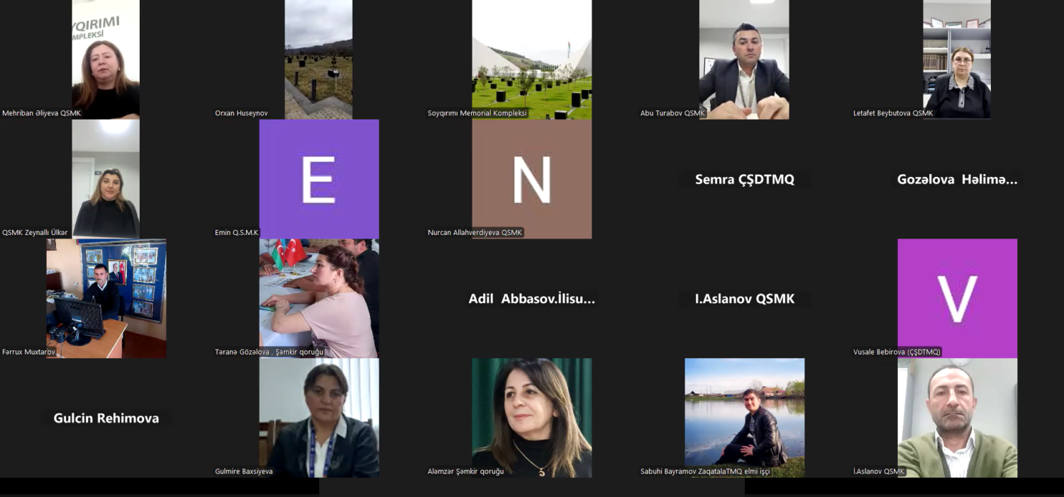 Azərbaycan Respublikası Mədəniyyət Nazirliyi yanında Mədəni İrsin Qorunması, İnkişafı və Bərpası üzrə Dövlət Xidmətinin tabeliyində olan Quba şəhərində “Soyqırımı Memorial Kompleksi”nin təşkilatçılığı ilə “1918-ci il azərbaycanlılara qarşı törədilmiş soyqırımı hadisələri” adlı növbəti vebinar keçirilib. Kompleksin direktor müavini Mehriban Əliyevanın moderatorluğu ilə keçirilən tədbirdə çıxış edən kompleksin əməkdaşı Orxan Hüseynov kompleksin yaradılması və fəaliyyəti barədə məlumat verərək vebinar iştirakçılarını kompleksin muzeyi ilə də tanış edib. O bildirib ki, ötən əsrin əvvəllərində erməni-daşnak quldur dəstələrinin Azərbaycan torpaqlarında həyata keçirdikləri kütləvi etnik təmizləmə və təcavüz siyasəti nəticəsində Bakı, Quba, Qarabağ, Şamaxı, Kürdəmir, Salyan, Lənkəran və digər bölgələrdə on minlərlə günahsız azərbaycanlı qətlə yetirilmiş, xalqımıza qarşı XX yüzilliyin ən faciəli soyqırımlarından biri törədilmişdir. Təkcə Quba qəzasında 1918-ci ilin aprel-may ayları ərzində 167 kənd tamamilə dağıdılmışdır. Quba şəhərində yerləşən kütləvi məzarlıqda soyqırımı nəticəsində hədsiz amansızlıq və xüsusi qəddarlıqla öldürülən azərbaycanlılarla yanaşı, ləzgilərin, yəhudilərin, tatların və digər milli azlıqlara mənsub minlərlə insanın da zorakılığa məruz qaldığı aşkar edilmişdir. Sonda iştirakçıları maraqlandıran suallar ətrafında fikir mübadiləsi aparılıb. Qeyd edək ki, vebinarda Azərbaycan Respublikası Mədəniyyət Nazirliyi yanında Mədəni İrsin Qorunması, İnkişafı və Bərpası üzrə Dövlət Xidmətinin tabeliyində fəaliyyət göstərən qoruqlardan 20-dən çox əməkdaş iştirak edib.