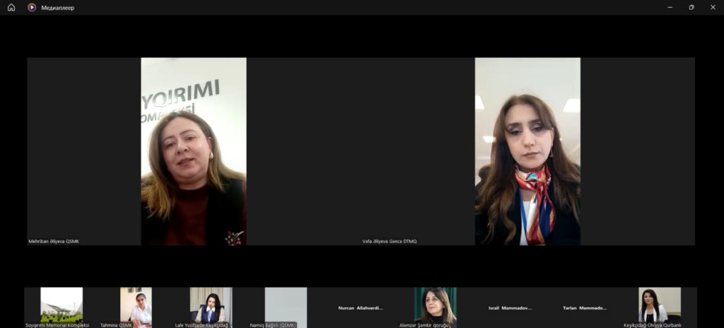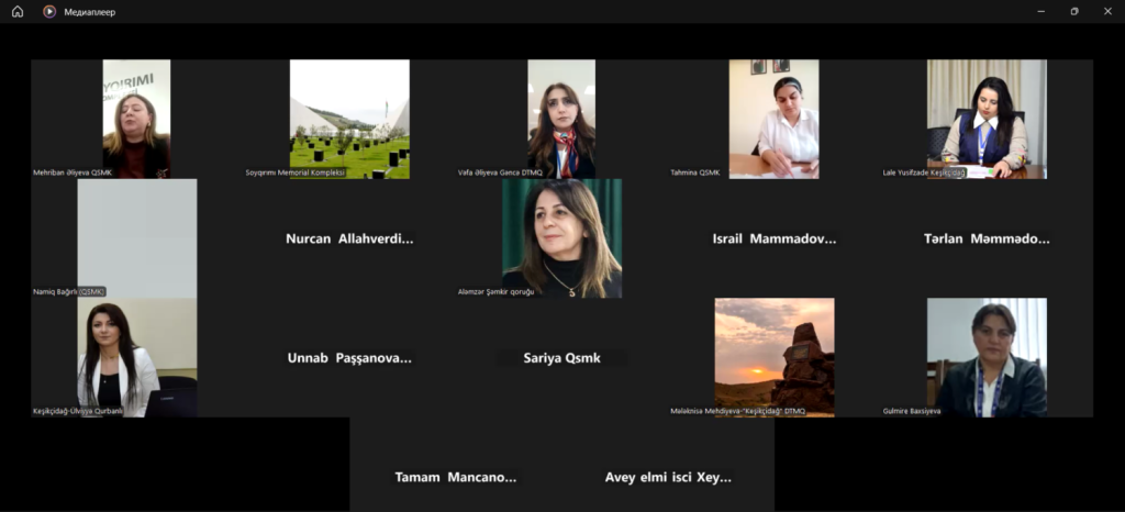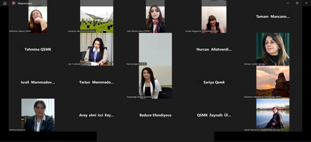 Soyqırımı Memorial Kompleksinin direktor müavini Mehriban Əliyevanın moderatorluğu ilə keçirilən vebinarda 1918-ci ilin soyqırımı hadisələrinin tarixi mahiyyəti, Azərbaycan xalqına qarşı törədilmiş qırğınların nəticələri və bu hadisələrin beynəlxalq ictimaiyyətə çatdırılmasının əhəmiyyəti barədə çıxışlar olunub.