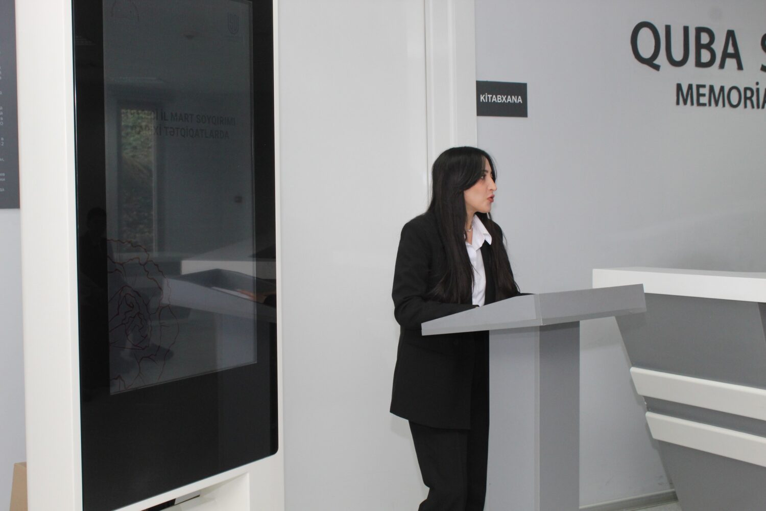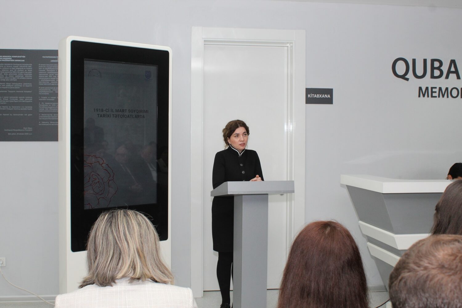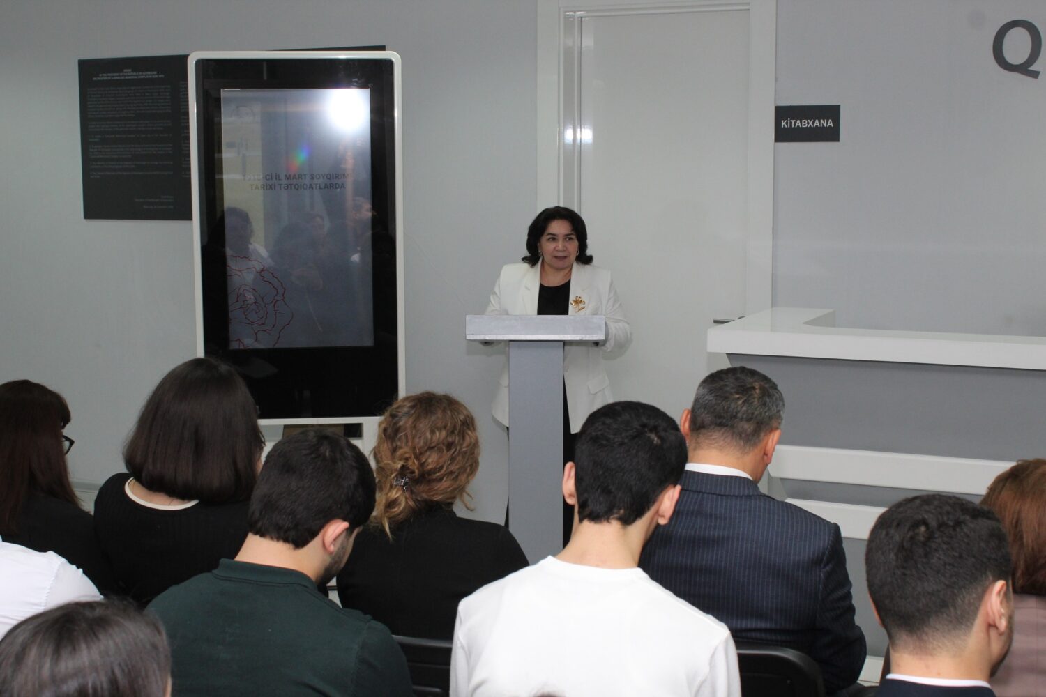 Tədbiri giriş sözü ilə açan Kompleksin direktoru Dr. Rəxşəndə Bayramova çıxışında Azərbaycanın tarixi həqiqətlərini, o cümlədən 1918-ci il soyqırımı həqiqətlərinin geniş şəkildə araşdırılmasının, elmi əsaslarla öyrənilməsinin və beynəlxalq ictimaiyyətə çatdırılmasının vacibliyini vurğulamış, bu istiqamətdə həyata keçirilən tədbirlərin əhəmiyyətindən bəhs etmişdir. O bildirib ki, 1918-ci ilin 31 martından başlayaraq Bakı şəhərində və Bakı quberniyasının müxtəlif bölgələrində, eləcə də Şamaxı, Quba, Xaçmaz, Lənkəran, Hacıqabul, Salyan, Zəngəzur, Qarabağ, Naxçıvan və digər ərazilərdə Bakı Soveti qoşunları və daşnak erməni silahlı dəstələri dinc əhaliyə qarşı soyqırımı törətmişlər. 1918-ci il soyqırımı hadisələrinə hüquqi-siyasi qiymət Ümummilli lider Heydər Əliyevin 1998-ci il 26 mart tarixində imzaladığı “Azərbaycanlıların soyqırımı haqqında” Fərmanla verilmiş və bu sənəddə azərbaycanlıların ermənilər tərəfindən soyqırımına məruz qalması ilk dəfə rəsmi şəkildə bəyan edilmişdir.